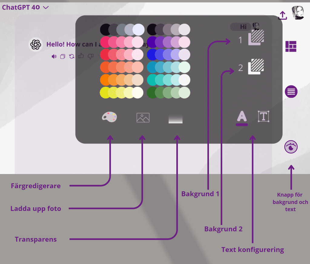 Fokus ligger på att optimera arbetsytan, erbjuda fler valmöjligheter för utseende och text konfiguration samt förbättra läsbarheten vid svars generering.