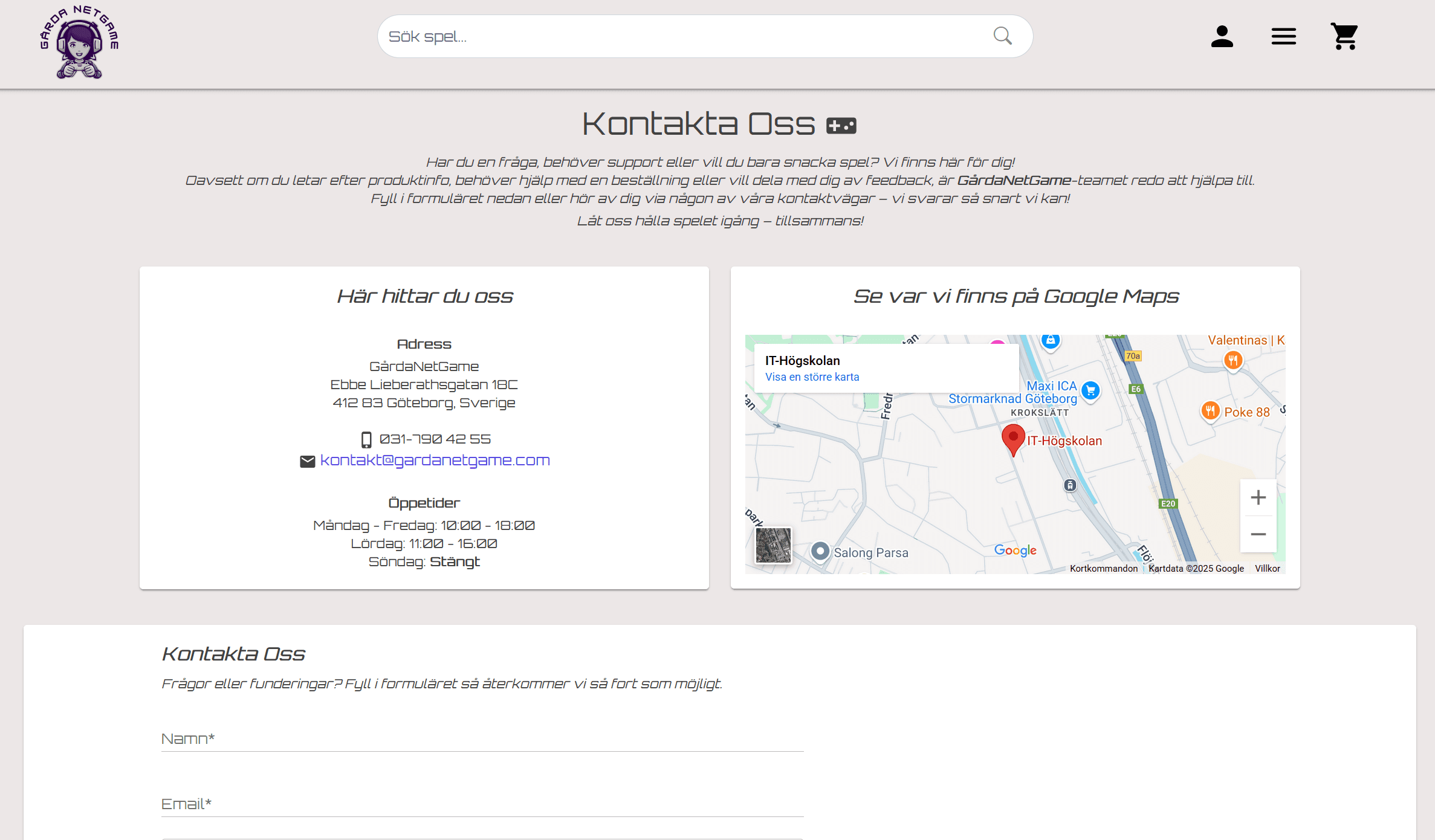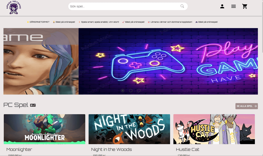 Gårda NetGame är ett företag specialiserat på PC-spel och tillhörande utrustning. Efter pandemin beslutades att verksamheten skulle utökas med en webbplats för försäljning av produkter online. På längre sikt är målet att även kunna anordna LAN och event, samt hantera anmälningar direkt via webben.