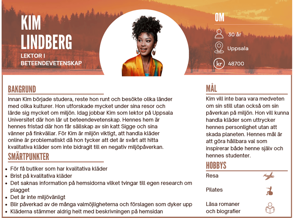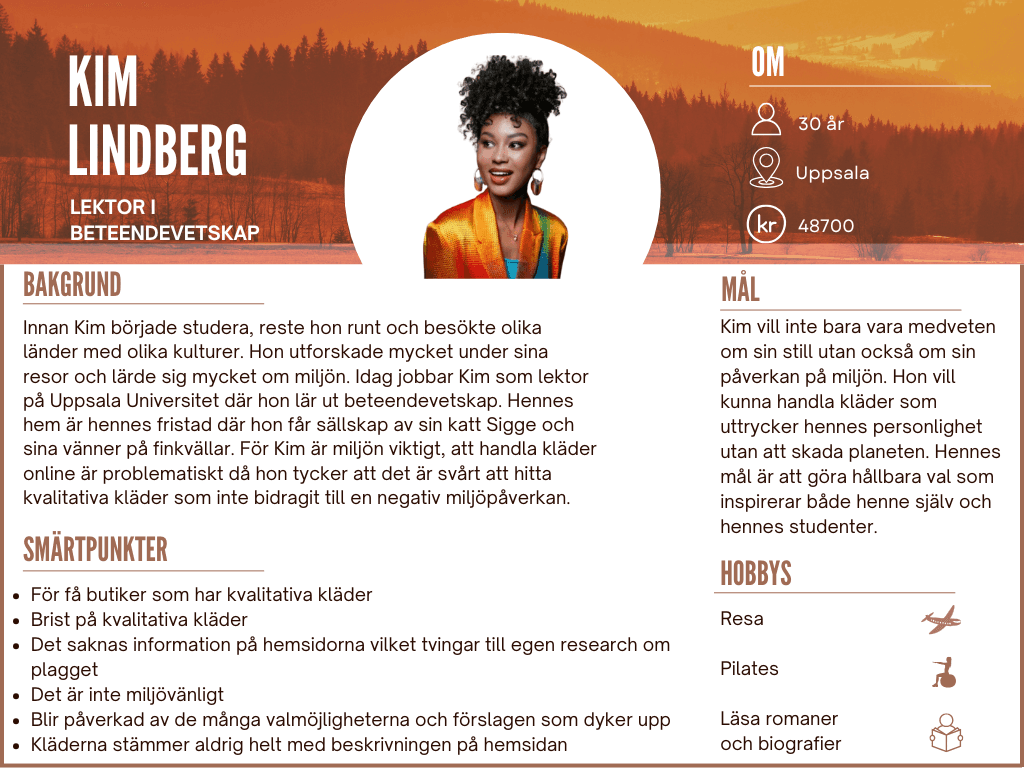 Utifrån den insamlade forskningen skapades två personas, men en valdes för att utgå från vid utformningen av en customer journey. - Kim