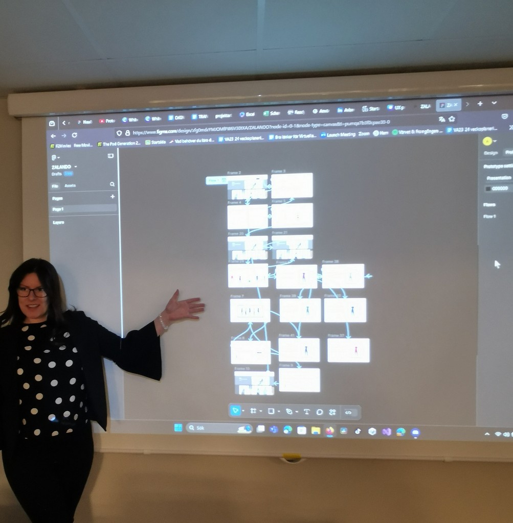 Designen skapades i Figma för desktopversion, och en interaktiv prototyp utvecklades så att deltagarna kunde genomföra användbarhetstestning. Testningen inkluderade metoder : modererade tester, där moderator och deltagare interagerade samtidigt, samt fjärrmodererade tester via videokonferens. Alla tester kombinerades med think-aloud-protokoll för att få insikt i deltagarnas tankar och navigeringsmönster.